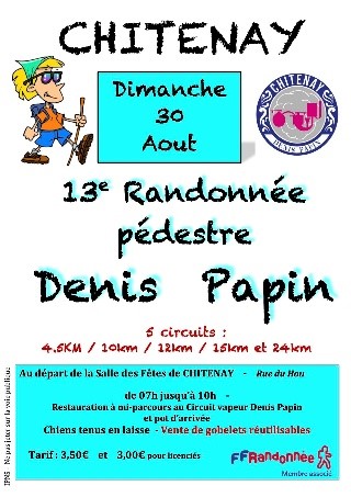 Septembre est là avec la randonnée CDP. L’association a dû modifier les circuits à cause de l’interdiction d’emprunter le chemin des platanes, propriété du château de Chitenay. Le départ de la randonnée qui, jusqu’à présent, se faisait devant la maison natale de Denis Papin, est déporté à la salle des fêtes. 219 randonneurs ont découvert les nouveaux circuits et ont été très satisfaits de l’organisation.