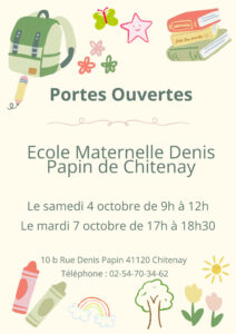 Ecole maternelle Denis Papin - 10 b Rue Denis Papin 41120 Chitenay Téléphone : 02-54-70-34-62